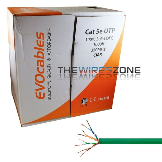 Cat5e Utp 100 Solid Copper 1000 Ft 350mhz 24 Awg Cmr Green
