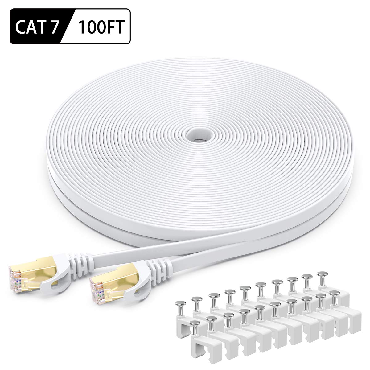 Cat 7 Ethernet Cable 100 Feet High Speed Flat Internet Network Computer Patch Cord Faster Than Cat6 Cat5e Lan Wire Shielded Rj45 Connectors For