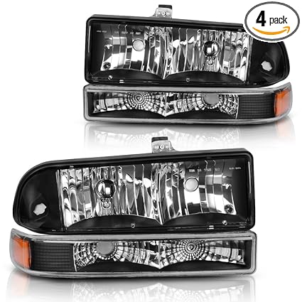 For 1998 1999 2000 2001 2002 2003 2004 Chevy S10 Blazer Headlight Assembly Park Signal Lamps Replacement Black Housing Clear Cover One Year Limited