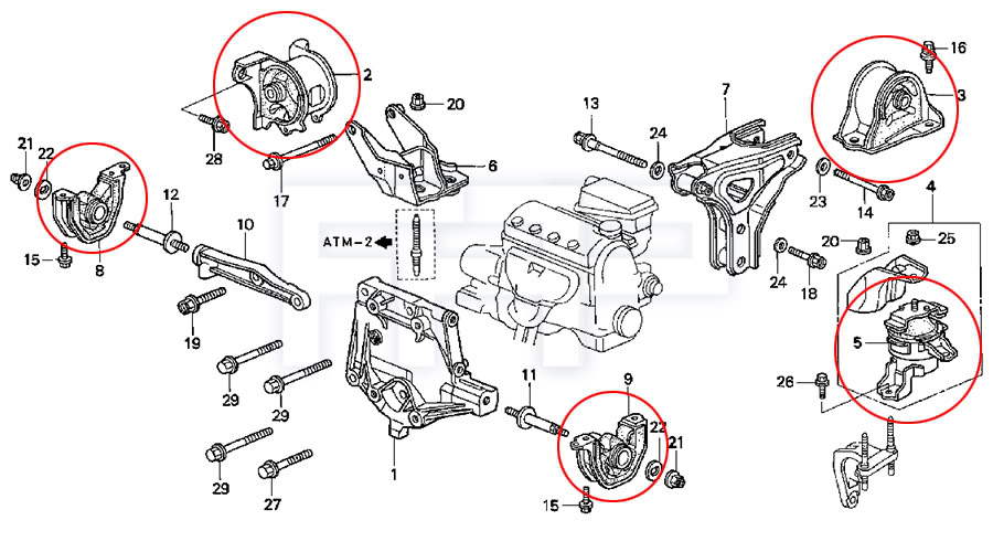 Where Are The Engine Mounts On A 2003 Honda Civic Ex And
