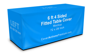 6ft table cover 128 imprint area 64 x 24 63 imprint area 64 x 24 front panel area 72 x 30 table cover layout. Canvas loops included securing the cover to each leg during install. The stretch table cover fits snug to most 6 collapsible tables perfect for a variety of tradeshows and events. See our great selection of 6 foot tablecloths printed with your full color designs.