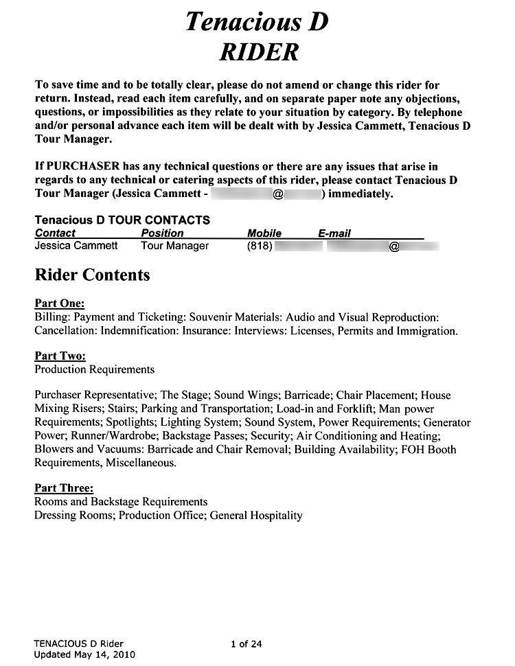 Artist hospitality rider template. The 1st page is actually our standard service quote sheet. Make sure that in your next show your voice is heard. It is really a very typical rider we deal with every day. They insisted on bowls of mm candies with all the brown ones removed they did this according to lead singer david lee roth to make sure the venues were actually reading the riders and not just glossing over them.