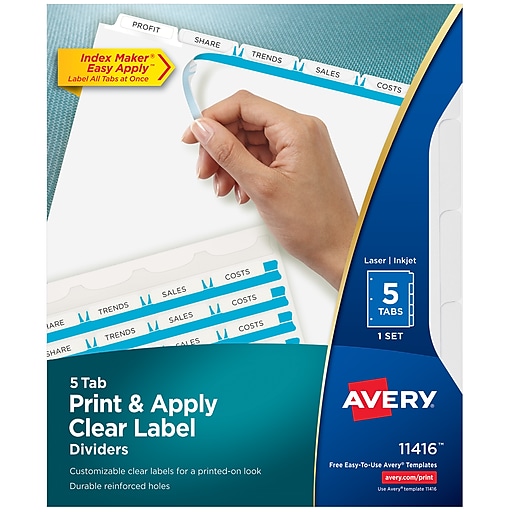 Avery print apply clear label dividers with index maker easy apply labels for laser and inkjet printers 5 tabs. Check the box if you want to create labels for both the front and back of your tabs. Select the number of sets you wish to create. Buy avery 11416 index maker clear label dividers 5 tab letter white with fast shipping and top rated customer serviceonce you know you newegg.
