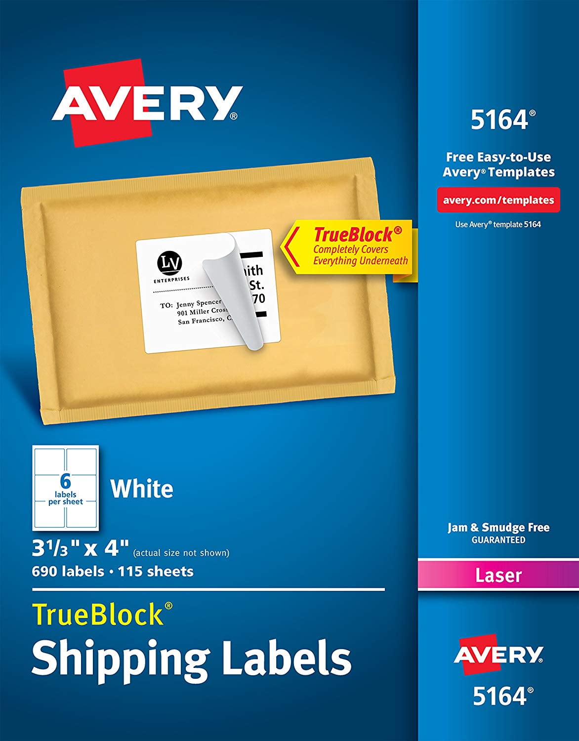 Avery white shipping labels 5164 template. Be the first to review this product. Just upload information from your database into the templates put the labels sheets in your printers paper tray click print and you have ready to stick labels in a few minutes. Avery laser mailing labels feature a bright white color and trueblock technology so you can make use of all your old boxes once again. Thousands of free pre designed shipping label templates.