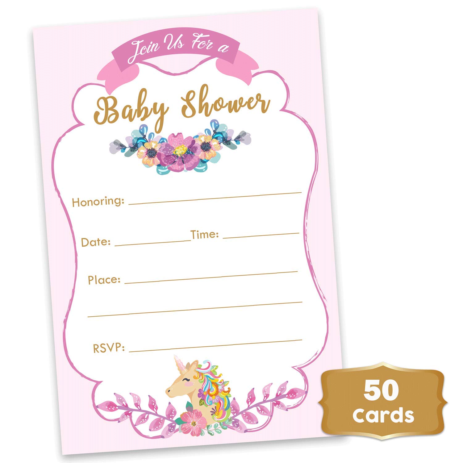 Unicorn Baby Shower Invitations Girl Pink Unicorn Floral Set Of 50 Floral Fill In The Blank Style