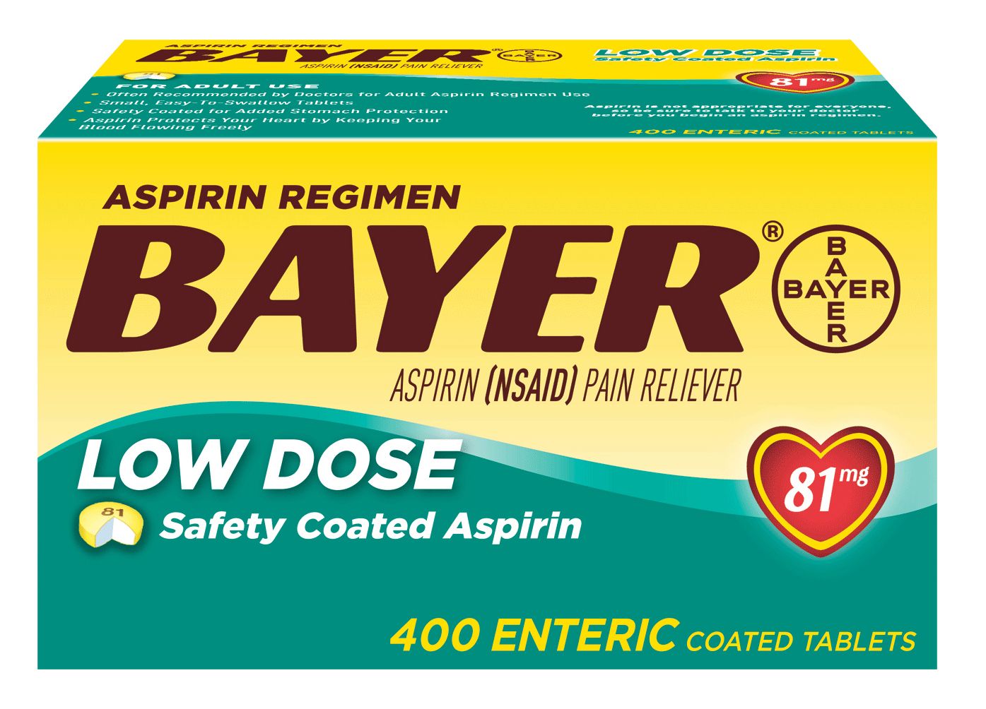Bayer Aspirin Regimen 81mg Low Dose Enteric Coated Tablets 400 Ct
