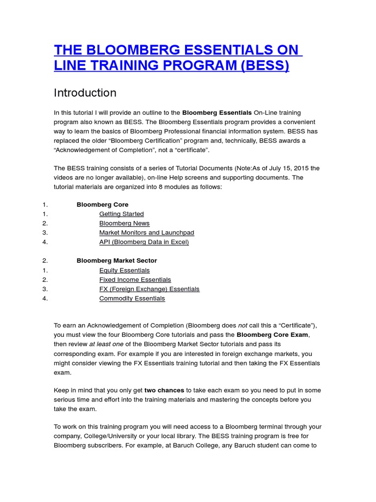 Bloomberg Certification Baruch