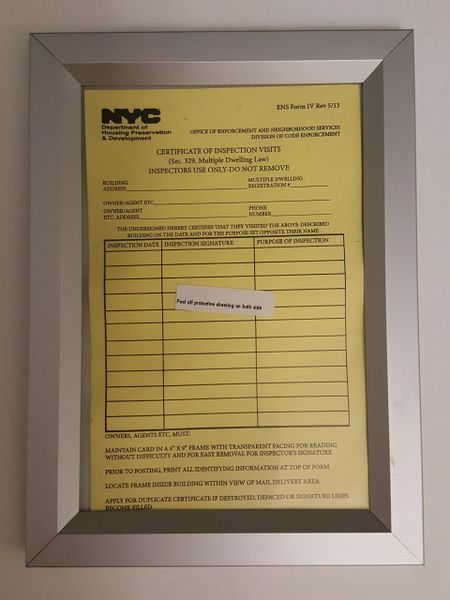Hpd Certificate Of Inspection Frame Inspection Frames 6x9
