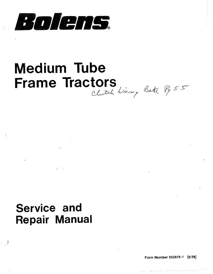 Fmc Bolens Medium Tube Frame Husky Tractors Service Manual