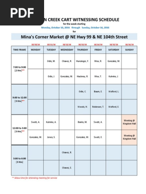 Cart witnessing schedule template. The schedule will be updated weekly with any changes. Street witnessing cart legal discussion. Included is also a black strip which should be glued to the white back of the witnessing cart so that no white shows and it all looks uniform. This is a religious organization that is doing this on a nonprofit basis and its for two days a month for a period of three months elliott said.