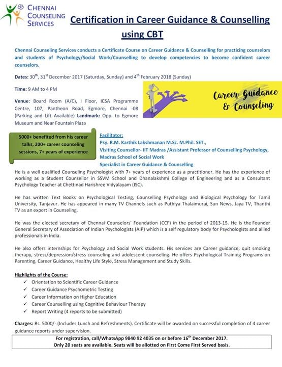 Certification In Career Guidance Counselling Using Cbt At