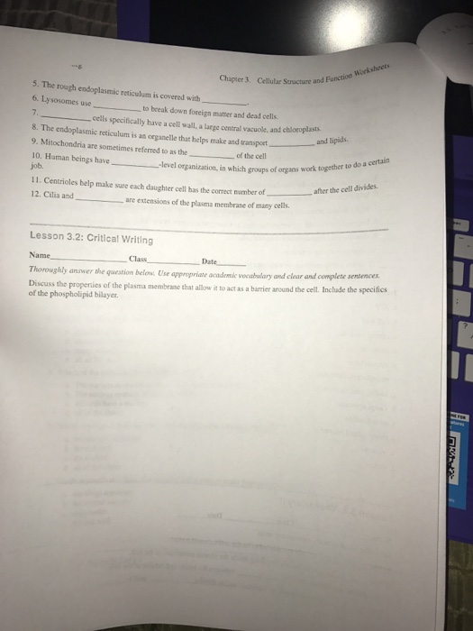 Chapter 3 Cellular Structure And Function Worksheets Pdf