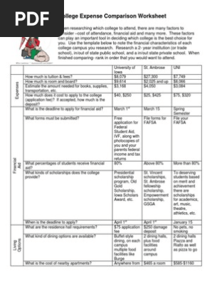 College Comparison Worksheet In Word And Pdf Formats