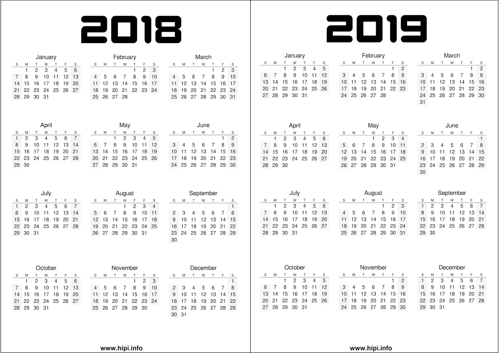Download free printable two year calendar template 2018 and 2019 and customize template as you like. Free printable calendars 2020 2021 2022. Free easy to print pdf calendar files. Here are the 2019 printable calendars.