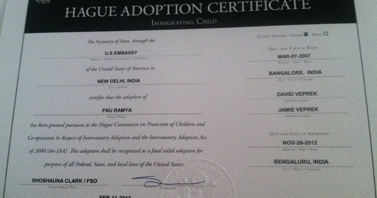 Hague adoption certificate is a certificate issued by the us. They entitle the adoption to be recognized in the united states and other convention countries. Embassy or consulate that issues the childs immigrant visa.