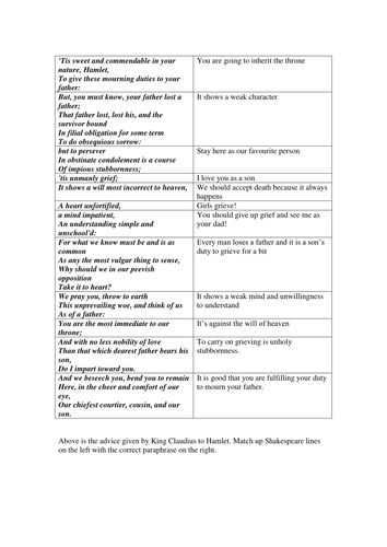 English Worksheets Hamlet Worksheets Page 4