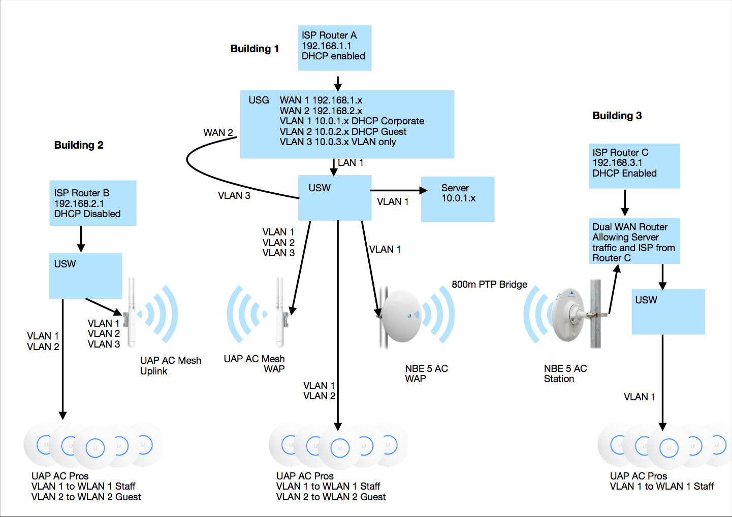 Unifi Ing 3 Different Buildings With 3 Different Isp Routers