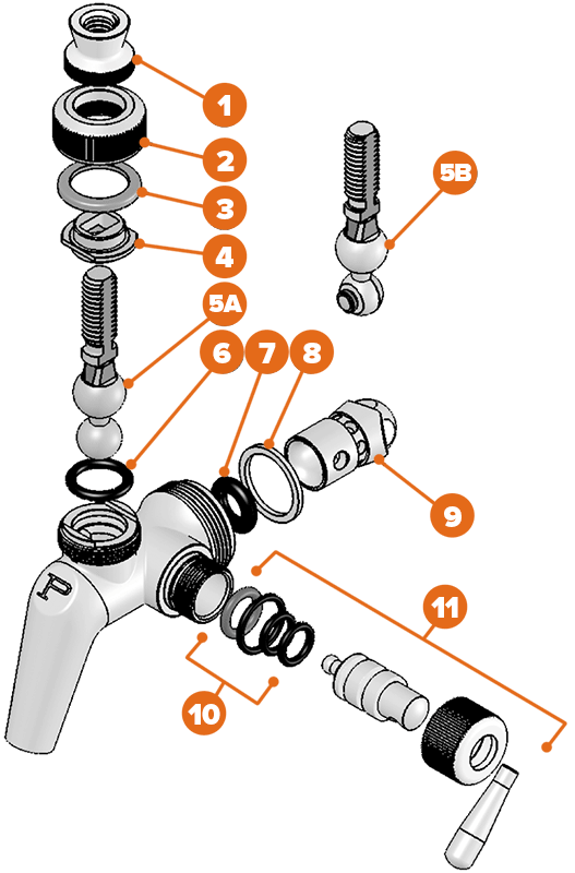 Keg faucet diagram. The most common parts that will need replacing are s 14 17. See diagram for which parts you need and select that. Also comonly used in serving nitro coffee on draft although we highly recommend only using the stainless steel stout facuet for coffee due to the acidity. We offer an extremely wide variety of beer faucets and faucet parts.