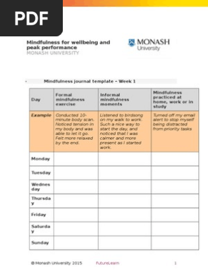 Felt more relaxed by the end. Noticed tension in my body and was able to let it go. This journal does not allow the use of footnotes except in reprinted papers. Mindfulness journal template week 1.