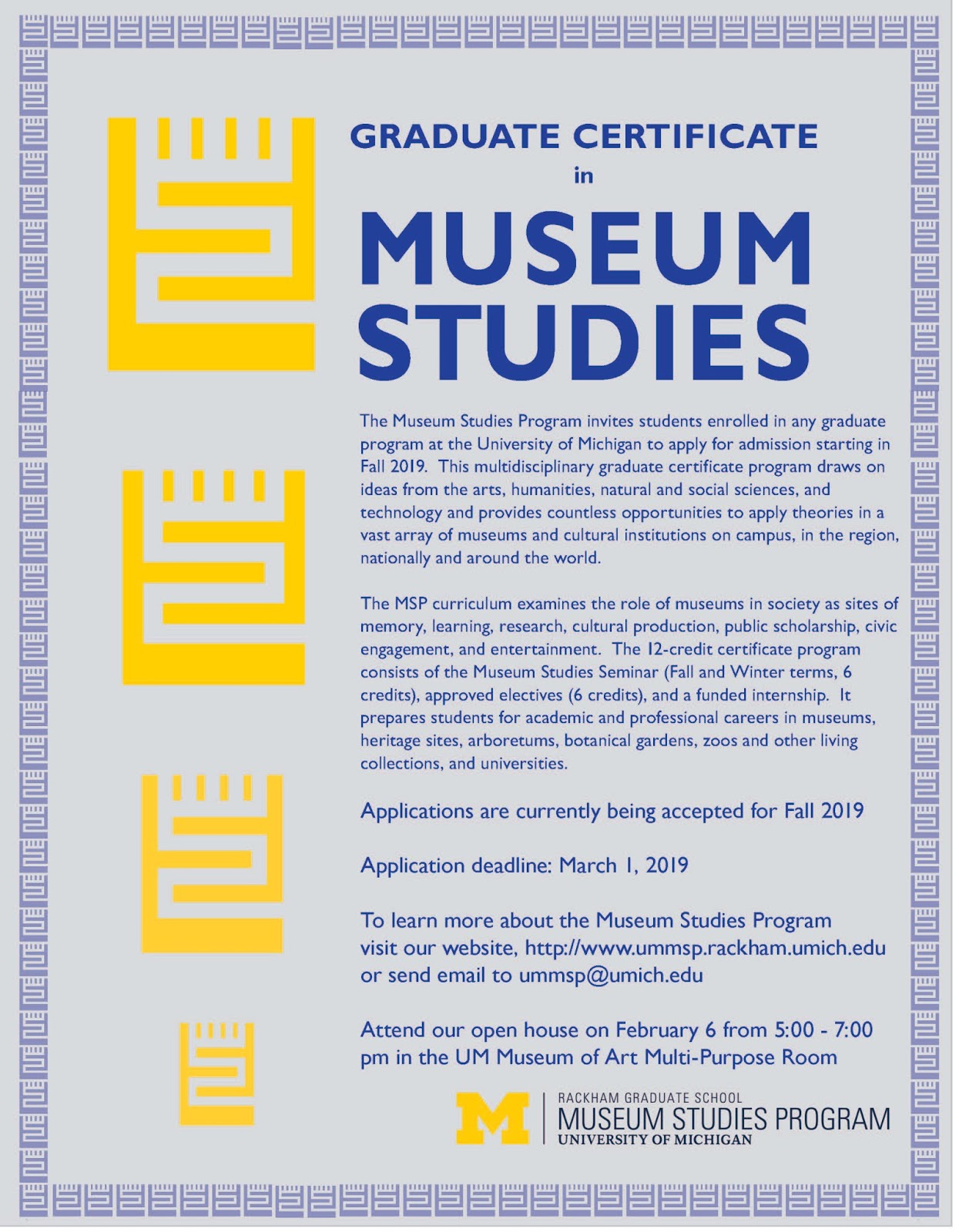 Apply active learning weekends to your museum studies certificate. The museum collections management and care online education certificate curriculum is based on graduate level courses taught at gw by nationally known faculty. The program is designed to be flexible and to allow you to go at your own pace. The tufts museum studies graduate level certificate program consists of five courses including an internship.