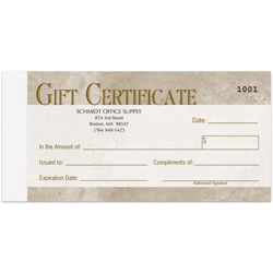 Browse our selection for a variety of preprinted and customizable gift cards and gift certificates. Save on printer ink and toner to keep your office efficient and productive. Not redeemable for cash except as required by law. Customers can purchase a gift certificate and give it to a friend family member or colleague so they can redeem the purchased products or services on their schedule.