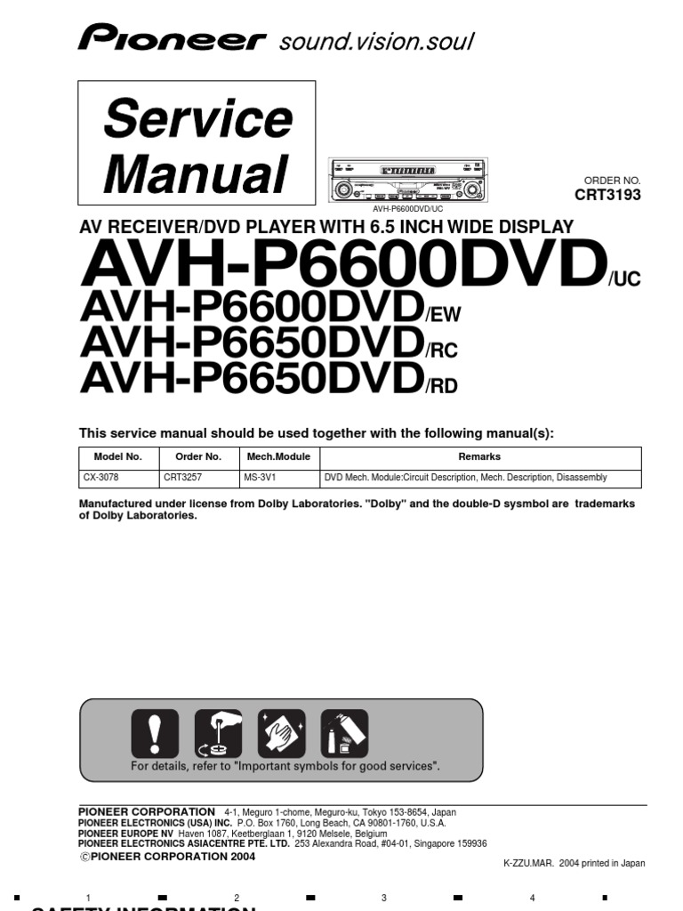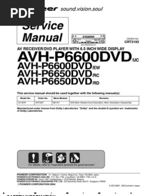 This unit is for vehicles with a 12 volt battery and negative grounding. Use only the parts. To ensure proper use please read through this manual before using this product. Avh p6600dvd printed in japan imprime au japon crd3858 a uc connecting the units english note.