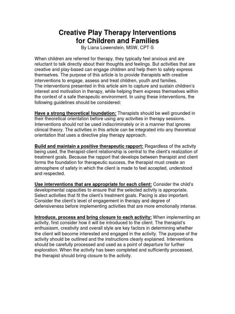 Liana Lowenstein Article Pdf Play Therapy Psychotherapy