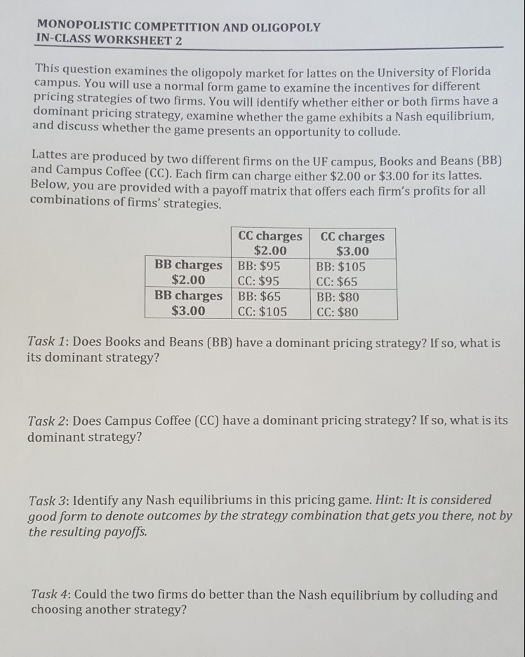 Solved Monopolistic Competition And Oligopoly In Class Wo