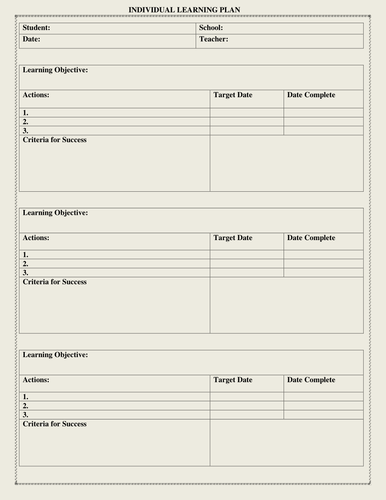 Printable Individual Learning Plan Template