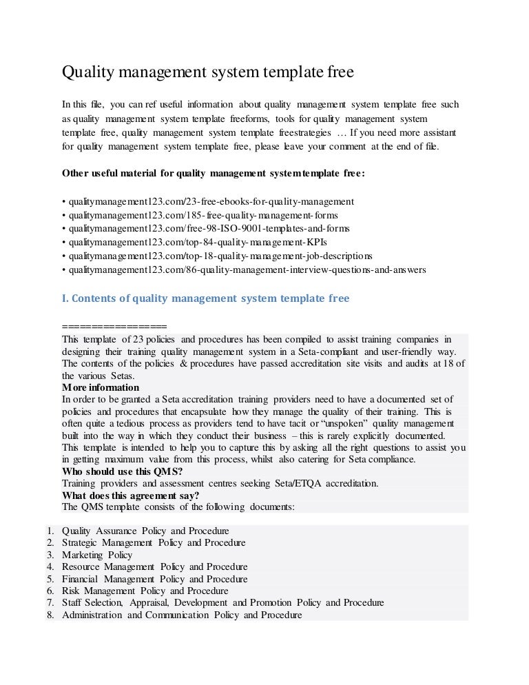 Sample Iso 9001 Quality Procedure Iso Procedures Manual