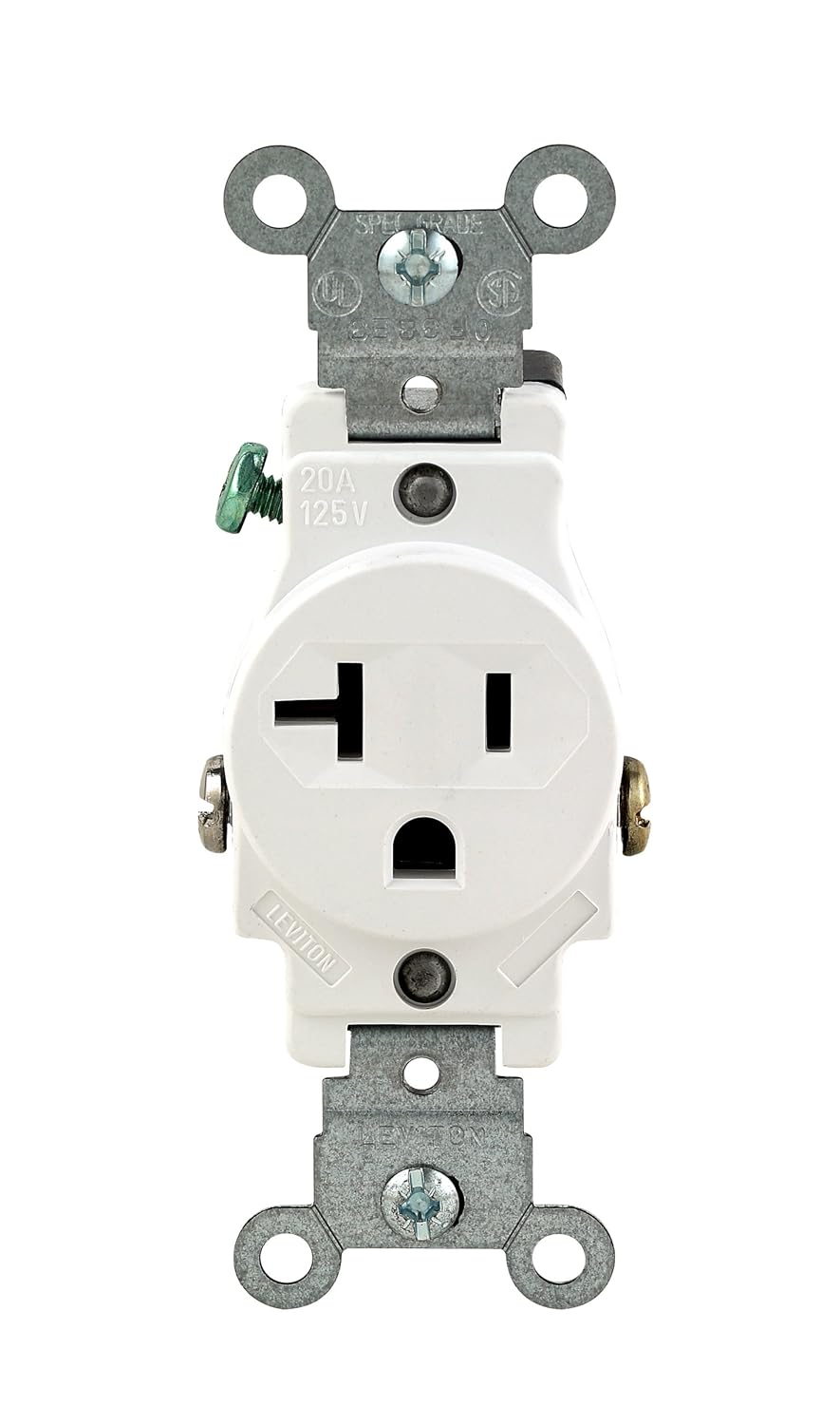 Leviton 102 05801 Wsp 20 Amp 125 Volt Single Receptacle Electrical Power Outlet White