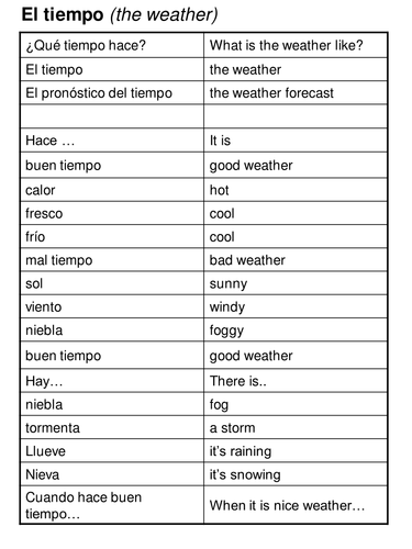 Spanish At School Y3 Y4 Weather Expressions What S The Weather Like Today Que Tiempo Hace Hoy