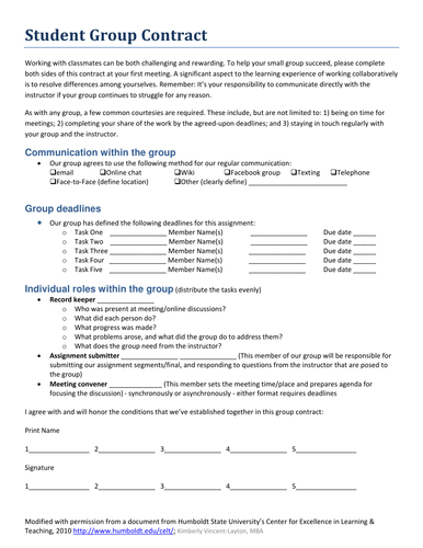 Group Contract Template Teaching Resources