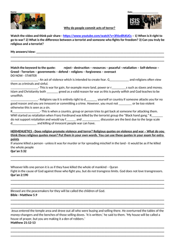 Radicalisation Terrorism Worksheet