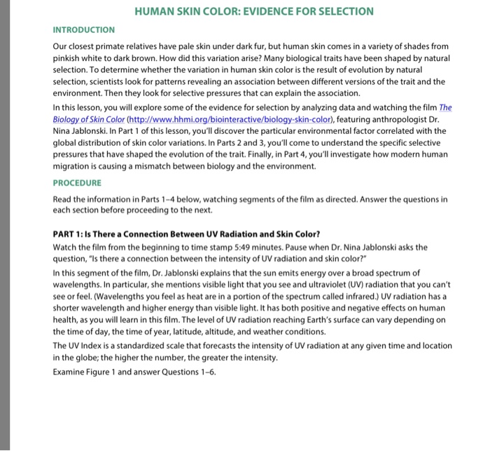 Solved Human Skin Color Evidence For Selection Introduct