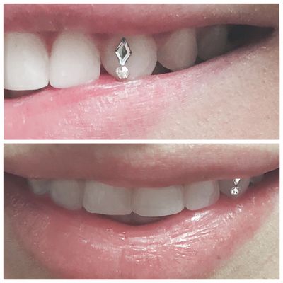 Dentists salons studios. When properly placed on a natural tooth the tooth jewelry will not damage or harm your tooth in any way. The tooth will be buffed and polished to remove any remaining bonding material. After researching the industry she became a certified tooth jeweler and uses the highest quality gems and bonds to ensure all her pieces last six months to two years.