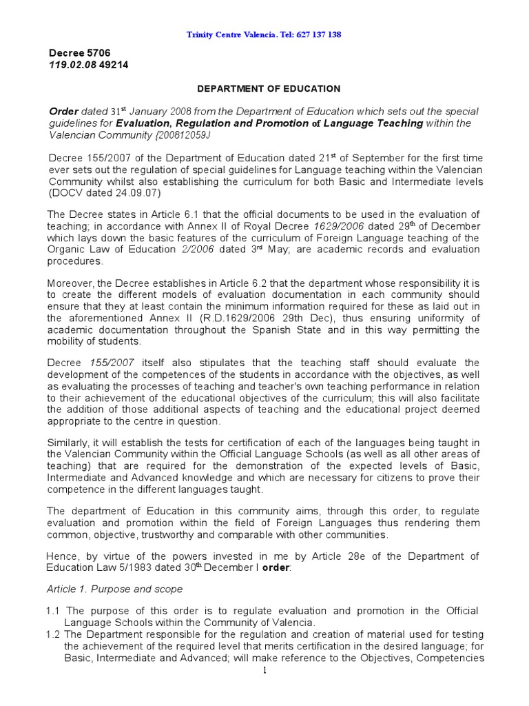 Eoi Evaluation Order Dd 31st Jan 2008 Valencia Teachers